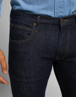 Die Lee Daren Jeans ist eine etwas schmalere, gerade geschnittene Jeans. Das Modell Daren von Lee Jeans ist für all diejenigen ideal, welche eine bequeme, aber trotzdem nicht zu breit geschnittene Jeans suchen. Die Hose weist eine mittlere Bundhöhe auf.